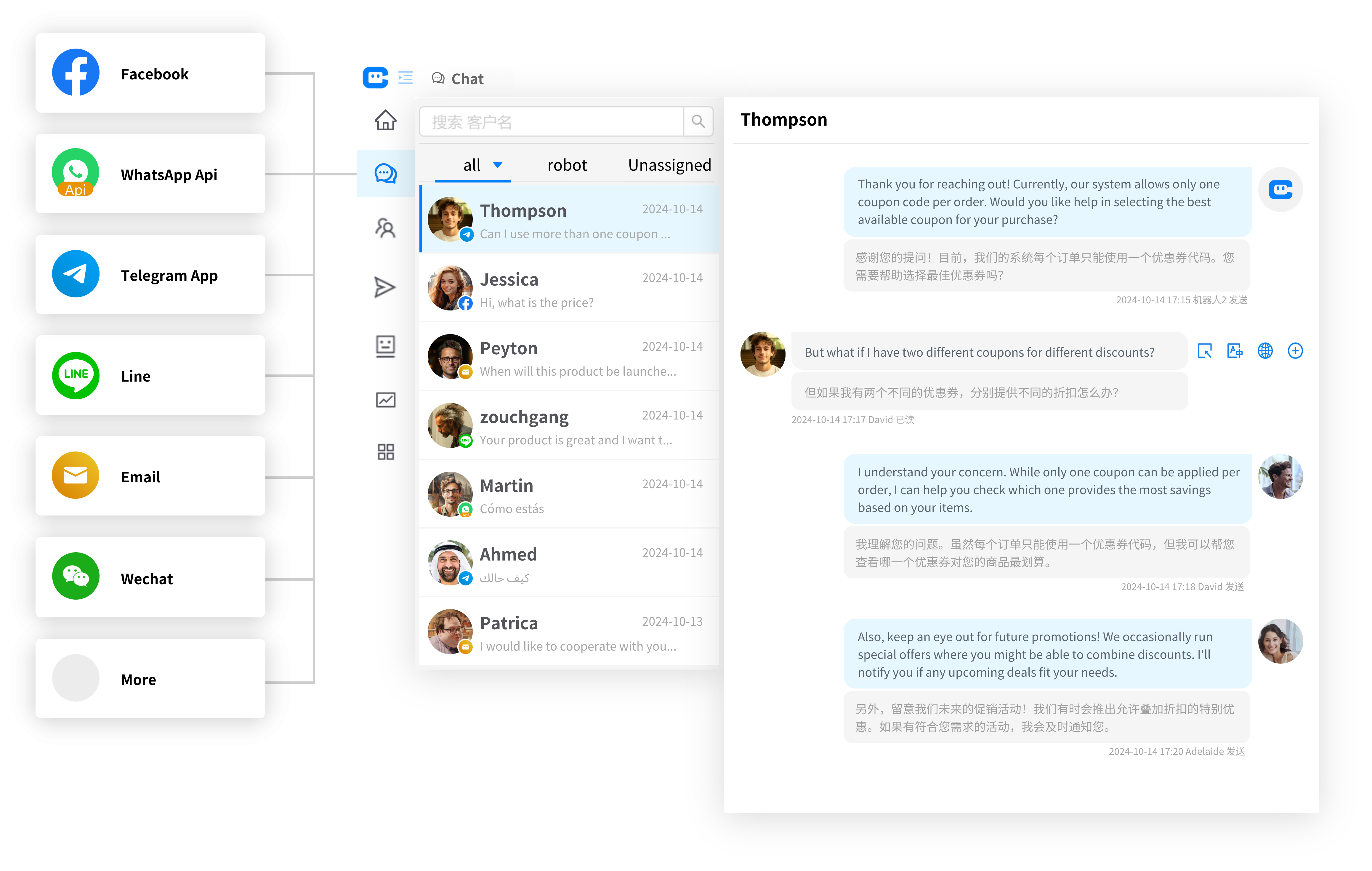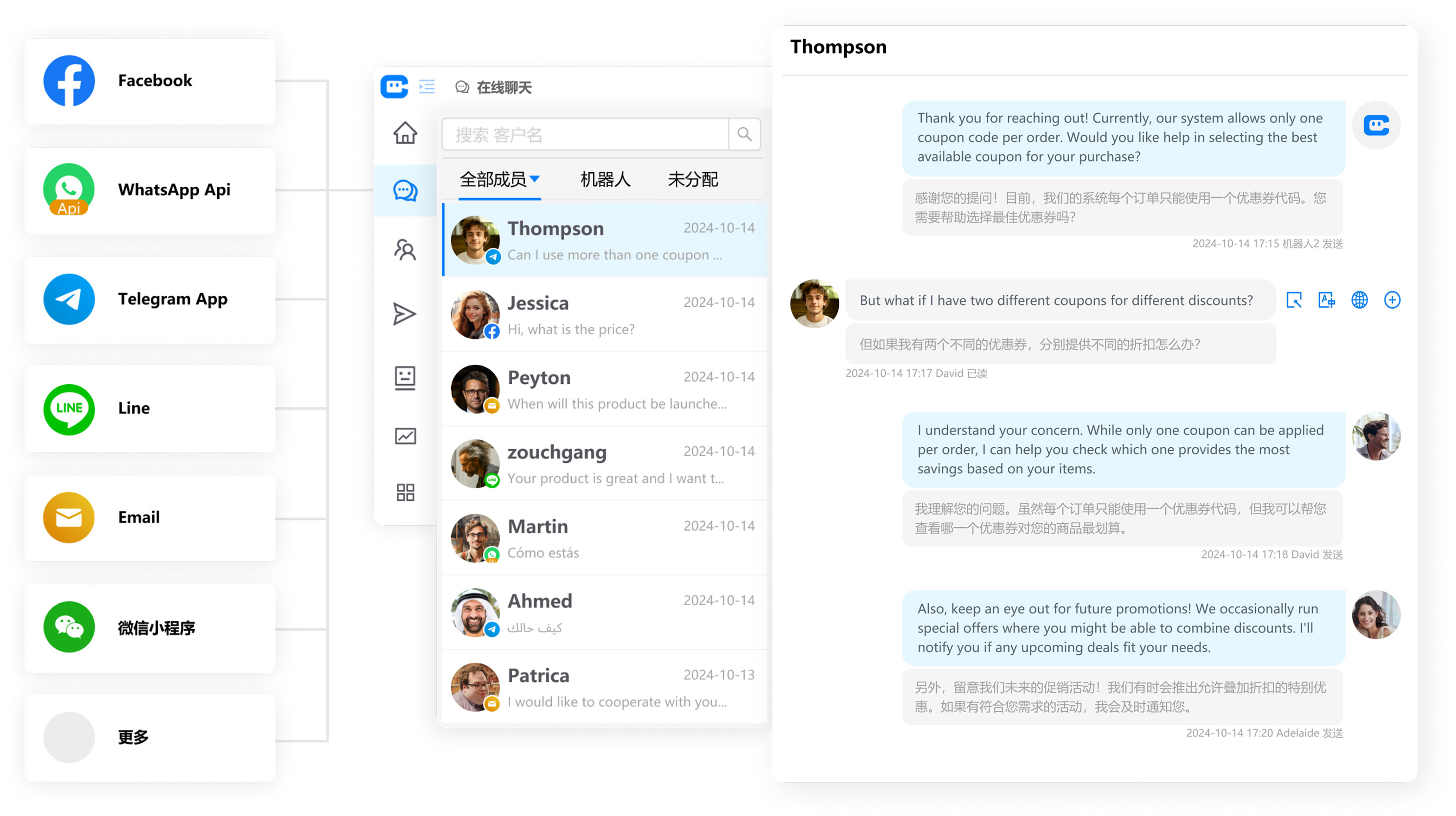 聚合在线聊天(Livechat)、WhatsApp、Facebook等全渠道智能客户营销联络平台
