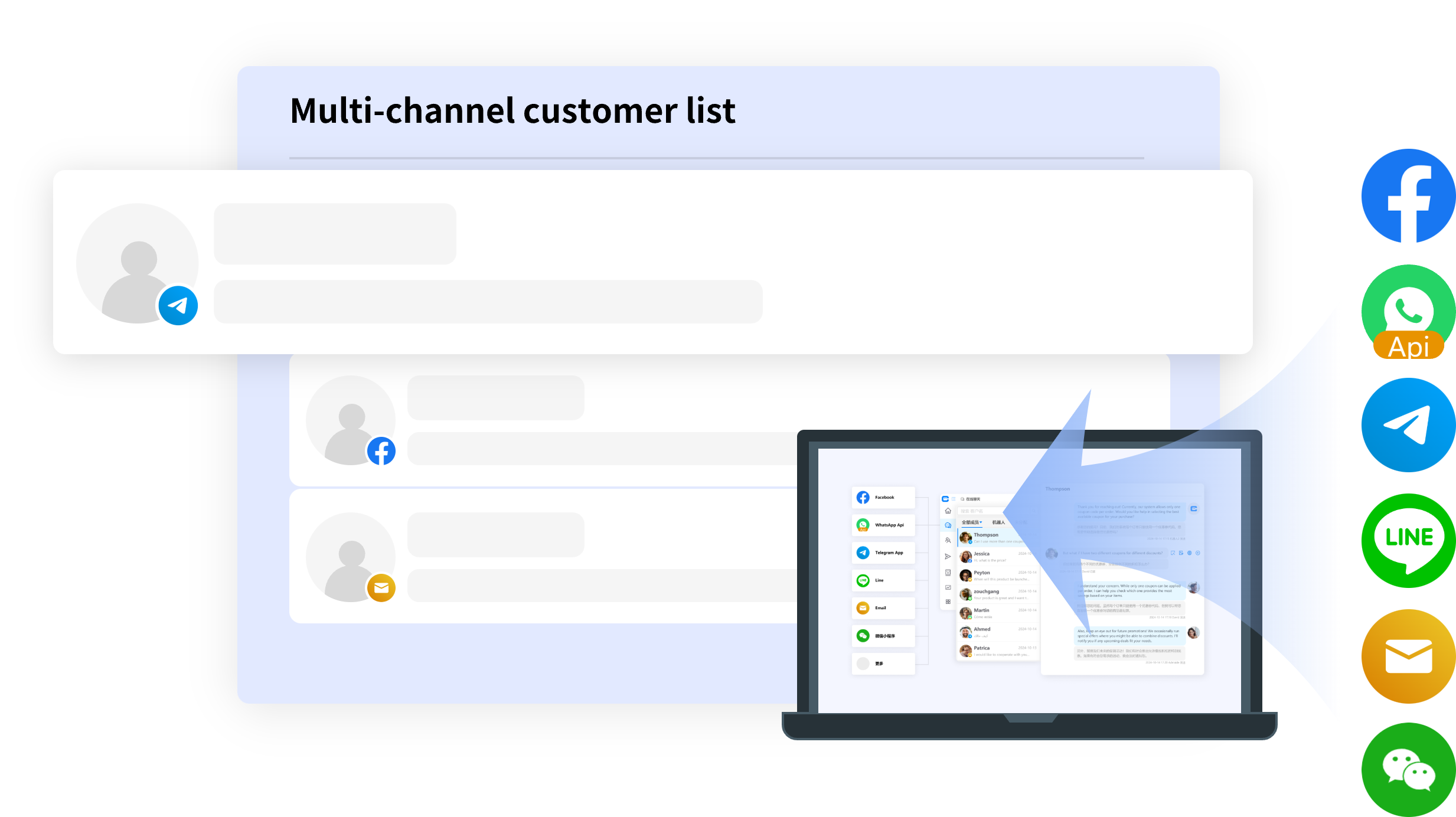 Messenger、Instagram、Telegram、Line、Email、Wechat;